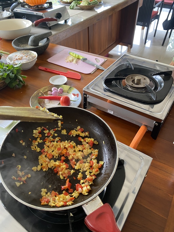 Making Indonesian food at a cooking class in Senggigi
